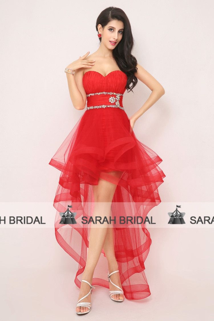 Wholesale 2015 High Low Ballkleider Rot Organza-und Tüll-Rüsche ...